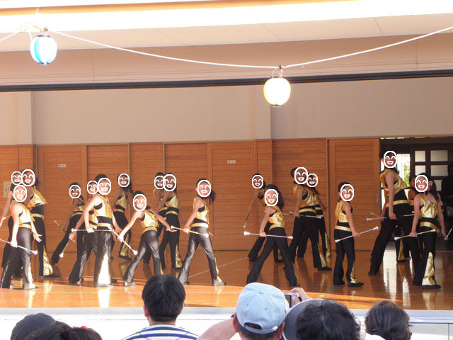 踊りに集中していると舞台慣れしていない小さい子達はと引きつり顔。